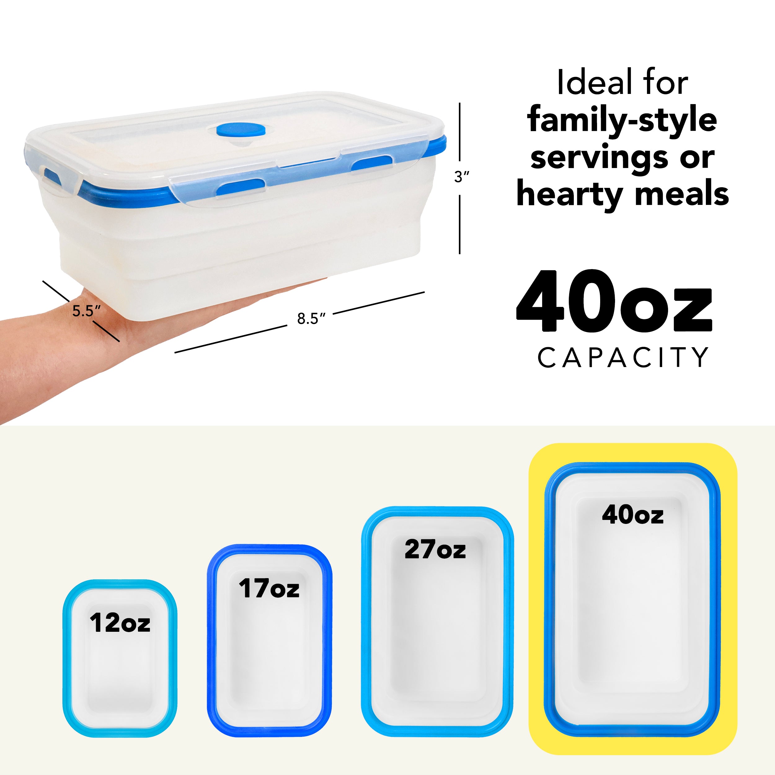 Includes 2 large: 2x 40oz. Ideal for full meals, freezer storage, and organizing small household items.