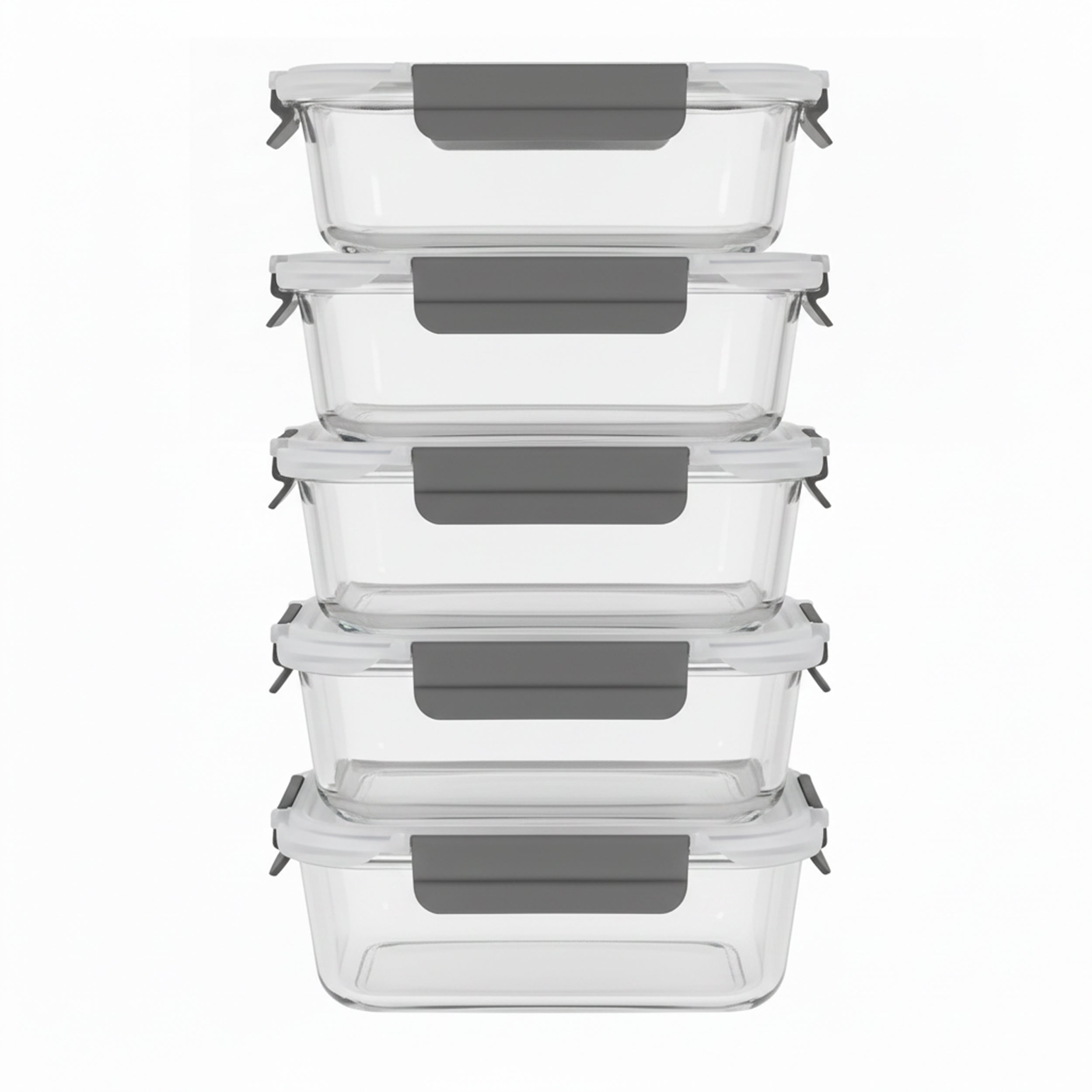 5 Glass Containers with Leakproof Lids – Includes five 4.5-cup borosilicate glass containers and five BPA-free snap-on lids with silicone seals to keep food fresh and prevent leaks.
